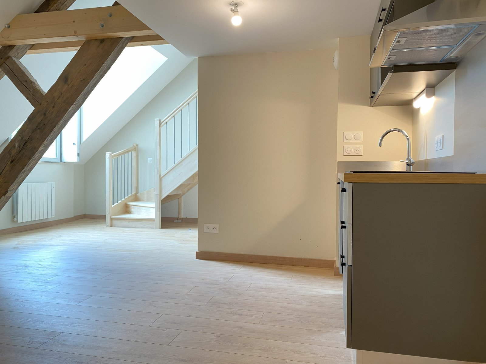 Situé au 2ème étage d'un ancien chai, il se compose d'un séjour avec une cuisine américaine semi-équipée (une hotte aspirante et une plaque de cuisson 2 feux), d'une salle d'eau avec WC et à l'étage, d'une chambre.