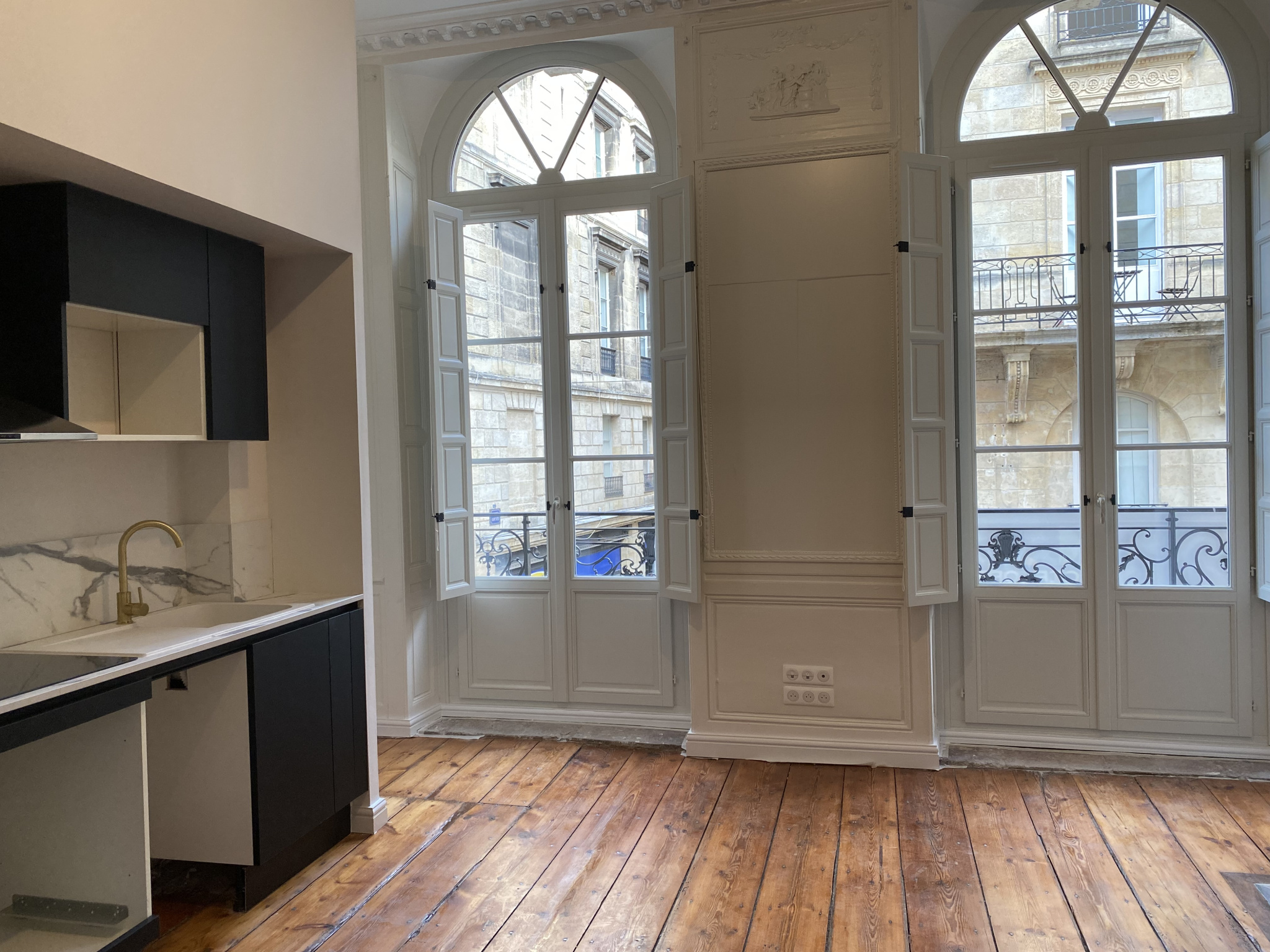 En plein coeur de Bordeaux, situé sur la plus grande avenue commerçante, dans un immeuble en pierre historique, nous vous proposons cet appartement de type 2, rénové avec des prestations anciennes de qualité (parquet ancien, moulures, grande hauteur sous plafond, cheminées..).