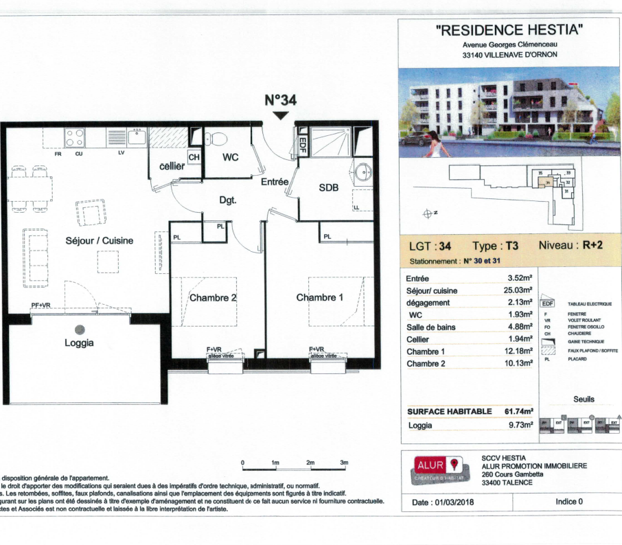 Situé au 2ème étage d'un immeuble récent, venez découvrir ce T3 de 61.74m².