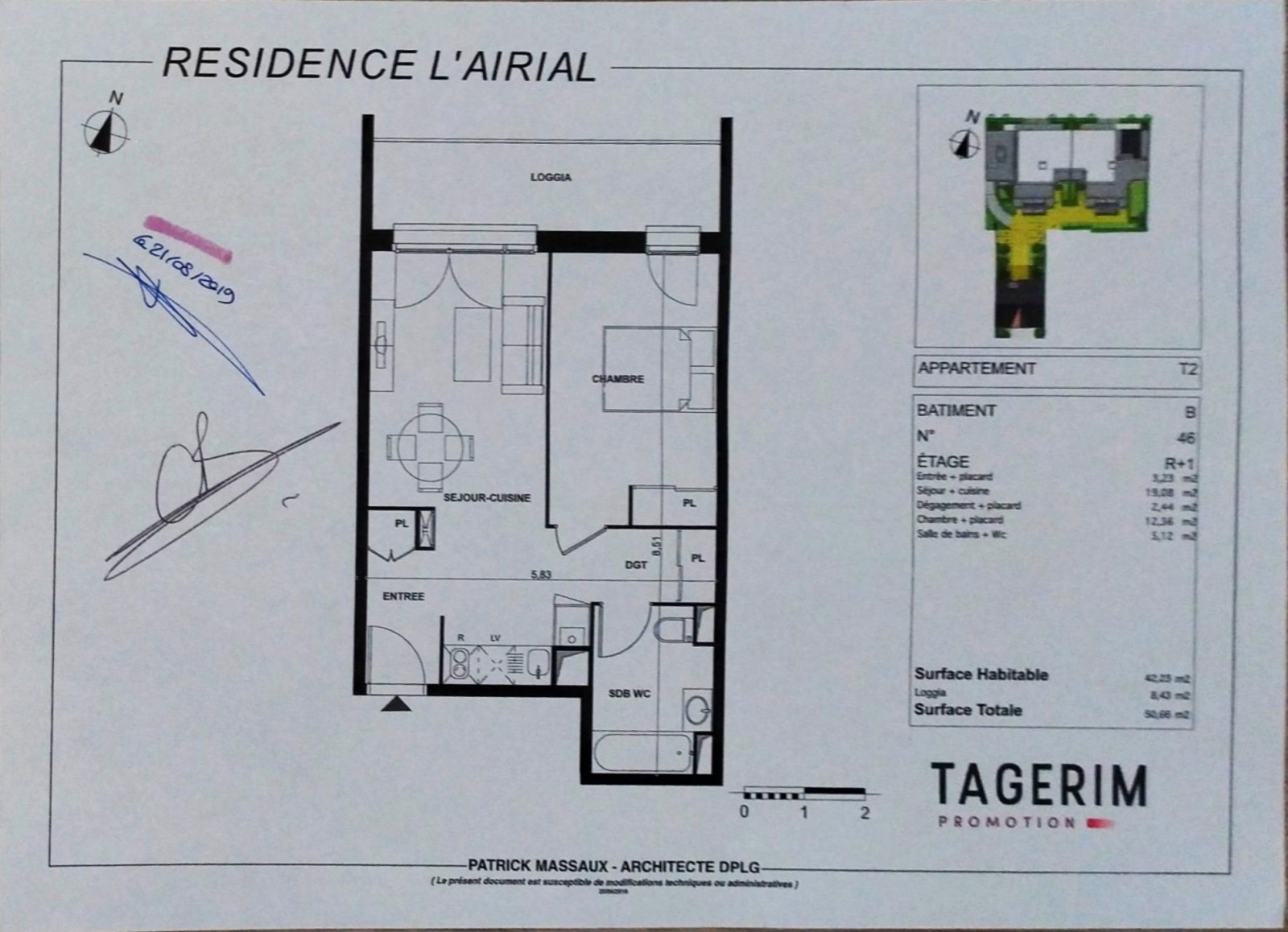 Situé au 1er étage d'une résidence récente, venez découvrir ce T2 loué vide de 42.23m².